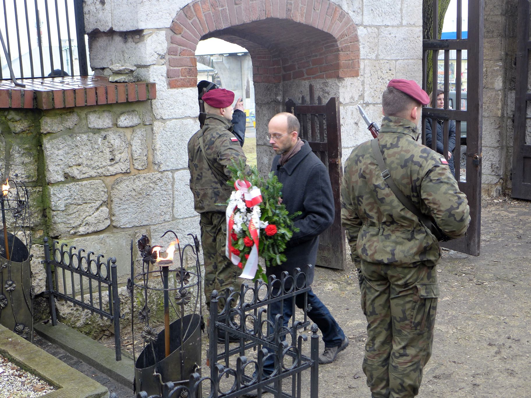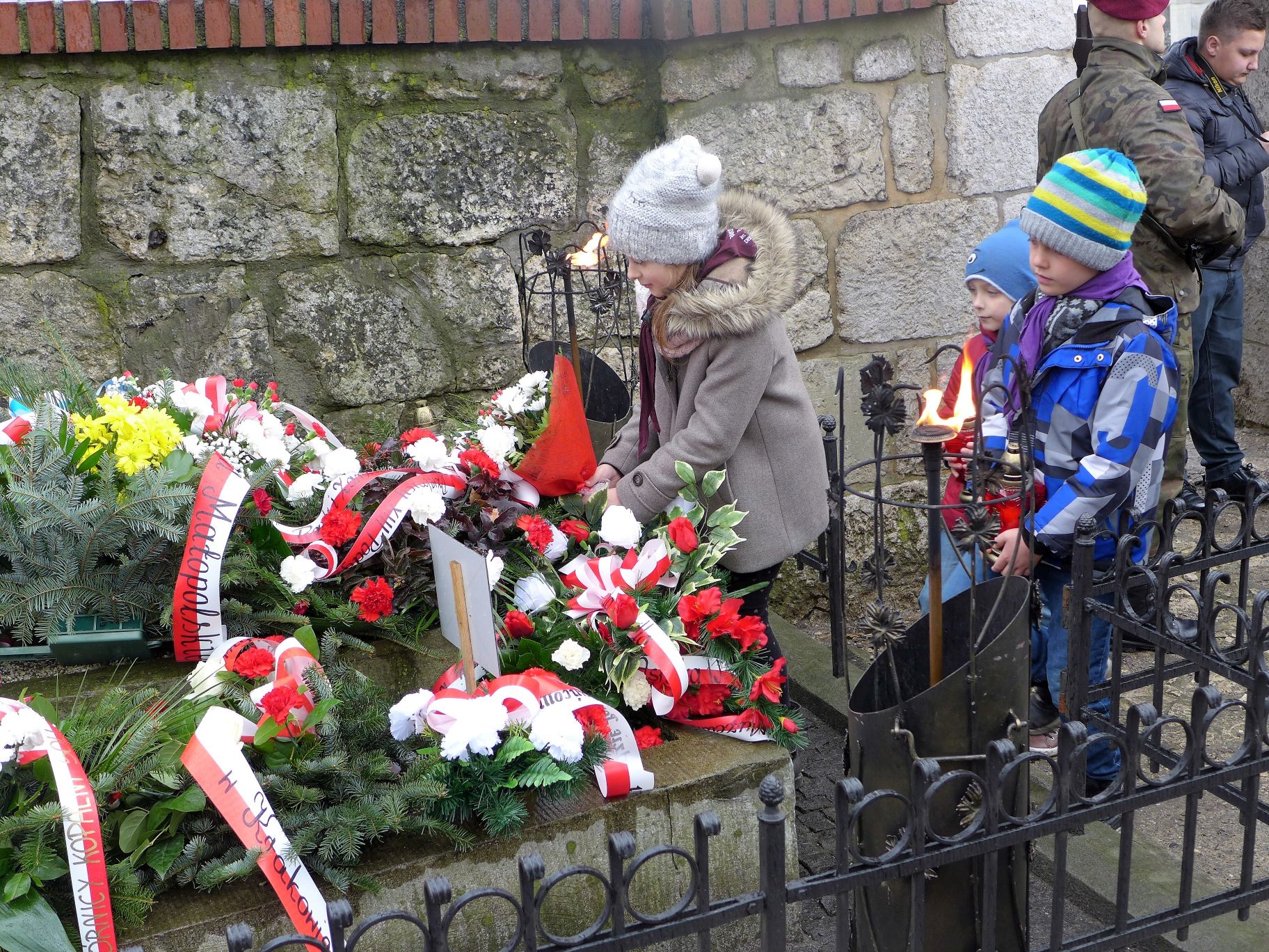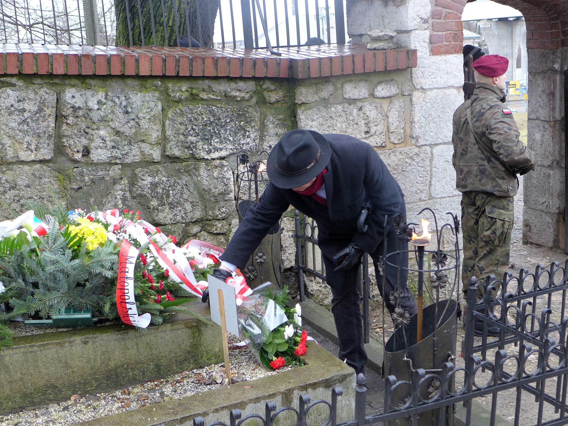 Po zakończeniu części artystycznej spotkania, nastąpiło uroczyste złożenie kwiatów. W rytm wojskowych werbli do grobu Edwarda Dembowskiego, podeszło około 20 delegacji. Byli to m.in.: reprezentanci Małopolskiej Rady Kombatantów i Osób Represjonowanych, Kazimierz Barczyk jako przedstawiciel władz Województwa Małopolskiego, Przedstawiciel Wojewody Małopolskiego – Pan Marcin Tatara, pełnomocnik Wojewody Małopolskiego ds. kombatantów i osób represjonowanych, w imieniu Prezydenta Miasta Krakowa – Pan Sławomir Pietrzyk – Wiceprzewodniczący Rady Miasta Krakowa, Rafał Ślęczka Zastępca Burmistrza Miasta Wieliczki ds. Społecznych, w imieniu Dyrektora Krakowskiego Oddziału Instytutu Pamięci Narodowej – dr Michał Wenklar, Naczelnik Oddziałowego Biura Badań Historycznych IPN w Krakowie, dr Marek Lasota – Dyrektor Muzeum Armii Krajowej w Krakowie im. gen. Emila Fielodrfa „Nila”, delegacje Związku Żołnierzy Armii Krajowej i Światowego Związku Żołnierzy Armii Krajowej z Krakowa, Radni Dzielnicy XIII Kraków – Podgórze oraz nauczyciele i uczniowie Technikum im. Edwarda Dembowskiego w Wieliczce.