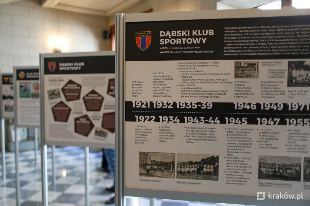 – Garbarnia Kraków, Dąbski Kraków, Prądniczanka Kraków, Prokocim Kraków i oczywiście Zwierzyniecki Kraków w tym roku obchodzą 100-lecie założenia. Kluby te często niesłusznie nazywane są małymi klubami sportowymi. To są kluby o wielkiej duszy, wielkiej historii i dużych zasługach dla naszego miasta. Te kluby sportowe wpisały się przez ostatnie 100 lat w historię działania na rzecz wychowania dzieci i młodzieży – mówił podczas otwarcia wystawy Dominik Jaśkowiec, Przewodniczący Rady Miasta Krakowa.
