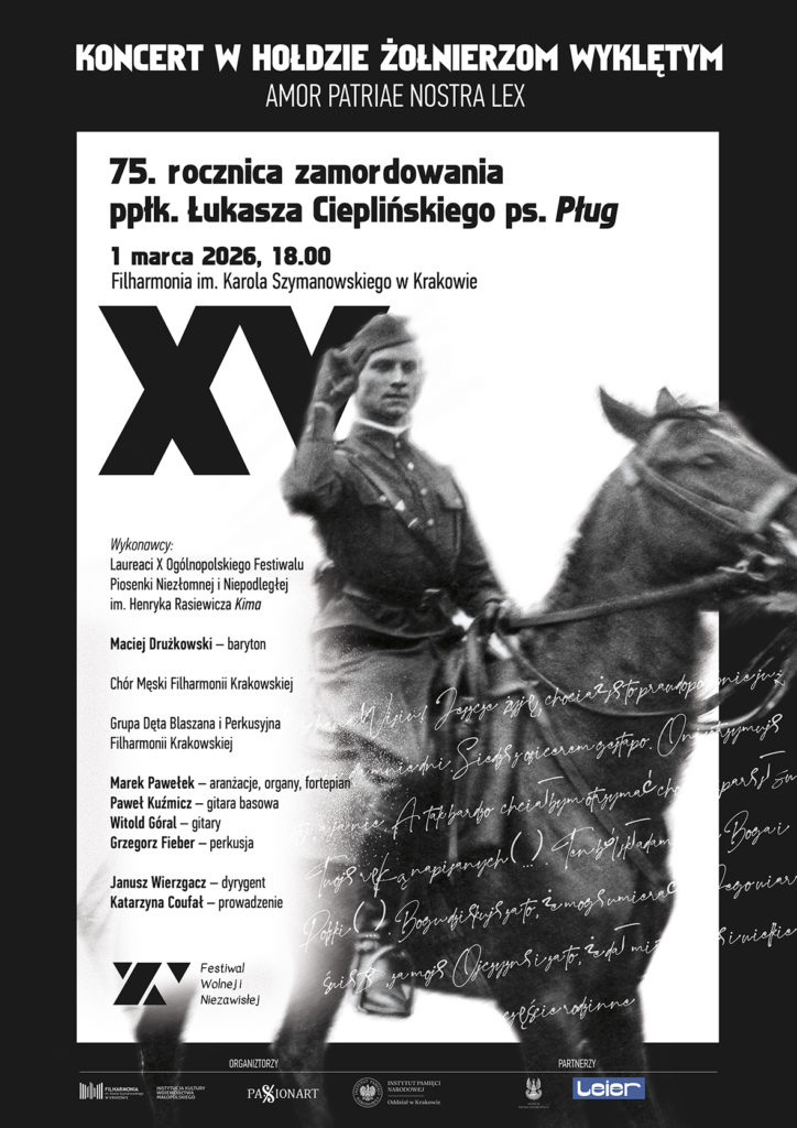 Zapraszamy na XV edycję uroczystego koncertu w hołdzie bohaterom powojennego podziemia niepodległościowego, organizowanego z okazji Narodowego Dnia Pamięci Żołnierzy Wyklętych. Koncert odbędzie się 1 marca 2026 r. w Filharmonii Krakowskiej, początek o godz. 18.00.